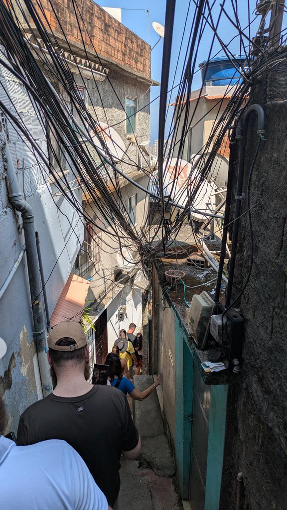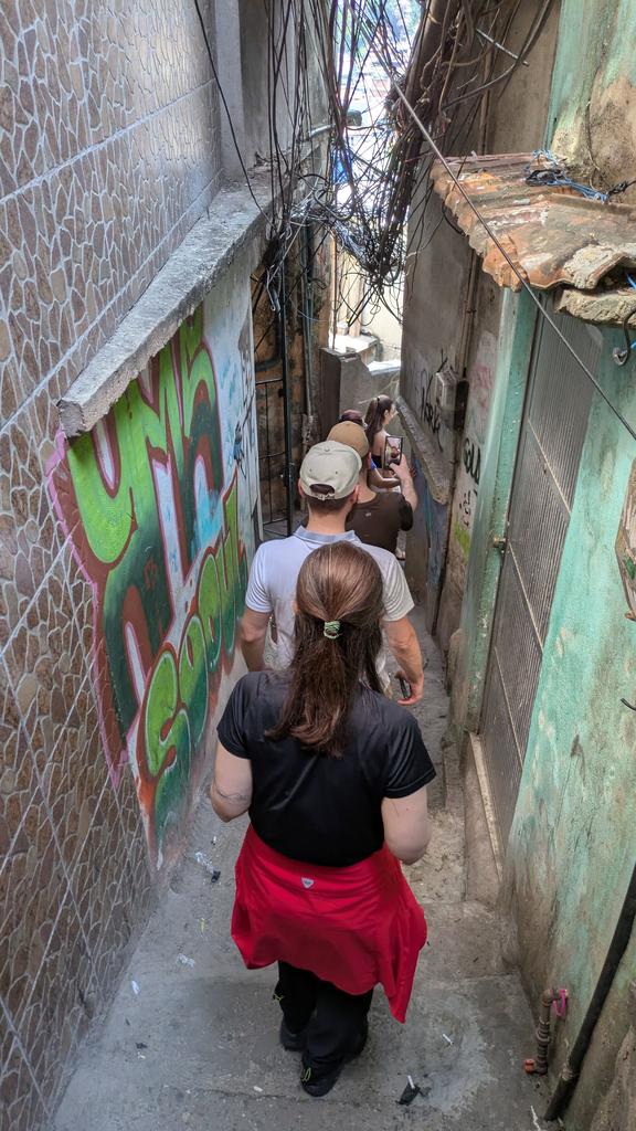 אדסון לקח אותנו כשעתיים בתוך רחובות הפאבלה, לפעמים המילה רחוב לא ממש התאימה כי המעבר היה כל כך צר שבקושי בנאדם עובר בו. עצרנו בבית של חברים שלו, לתצפית על הפאבלה, התצפית משקיפה על הפאבלה והשכונה שמתחתיה שכבר נמצאת לחוף הים. אדסון הסביר לנו שלכל שכונה יש את הפאבלה הצמודה, והן כרוכות אחת בשנייה במובן התעסוקתי כלומר מפרנסות אחת את השנייה.