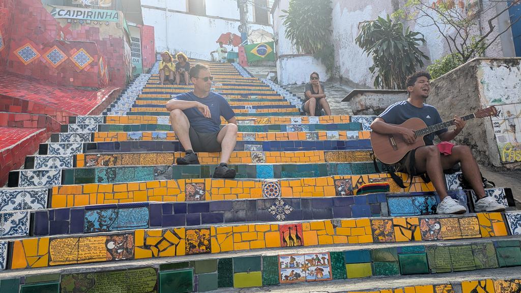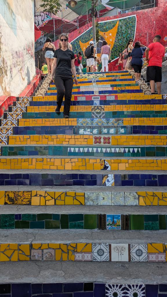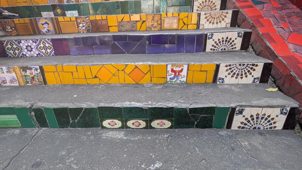 העצירה הבאה שלנו הייתה במדרגות סלרון (Escadaria Selarón). מדרגות שקישט האמן הצ'יליאני חורחה סלרון. במשך כעשרים שנה הוא שיבץ על המדרגות אריחי קרמיקה ומוזאיקה שחלקם מייצגים דמויות, סמלים לאומים דגלים מדינות שונות בעולם ועוד. המדרגות הצבעוניות יפות מאוד ותיירותיות למדי. קיבלנו כחצי שעה להסתובב שם. באופן מוזר אך לא ממש מפתיע ראינו שחלק מחברי הקבוצה התעניינו רק בדוכני הקניות שמסביב, למרות שהיו ממש מעט דוכנים עם מבחר מצומצם יחסית לאלו שיש בחופי קופקבנה אזור המלונות של כולנו, אין לי הסבר הגיוני.