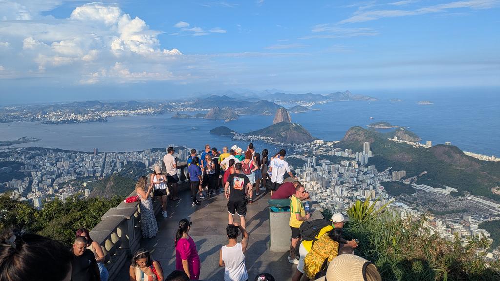 התחנה האחרונה של הסיור הייתה בתצפית של פסל ישו Cristo Redentor שעל הר הקורקבדו, שנותנת תצפית מרשימה על כל העיר. הנקודה הזו גם מאוד מפורסמת, רואים אותה כמעט בכל סרט שנעשה על ריו. כדי להגיע למעלה צריך לעלות על מיניואן ייעודי שמעלה ומוריד אנשים עד רחבה באמצע ההר ומשם יש מעלית או מדרגות עד התצפית עצמה. למעלה, היו די הרבה אנשים אבל לא היה צפוף מדי, ניתן היה להצטלם ולתצפת במידה סבירה.